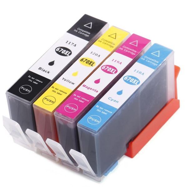 Kit 04 Cartuchos de Tinta Compativel 670xl para Impressora HP Modelo Ink Advantage 3525 4615 4625 5525