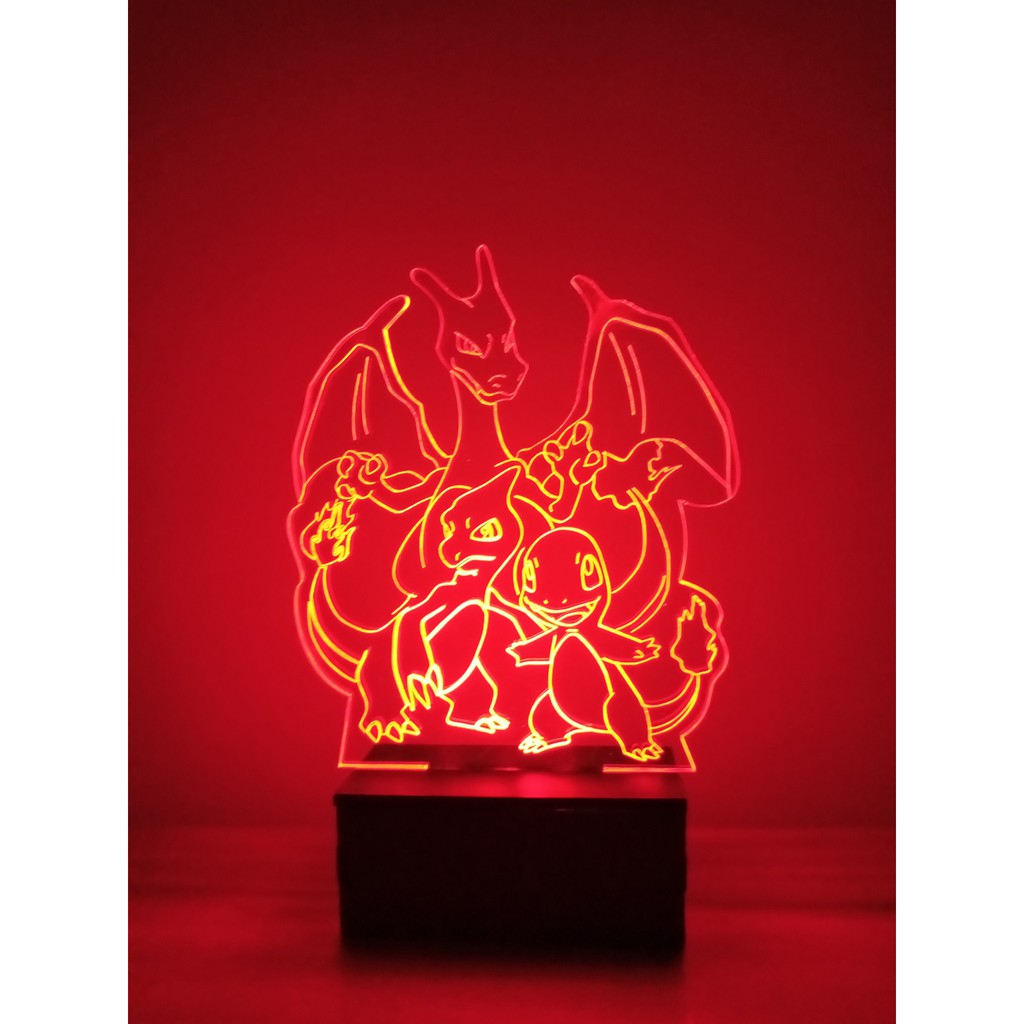 Luminária Pokémon evolução Charmander, Charmeleon e Charizard