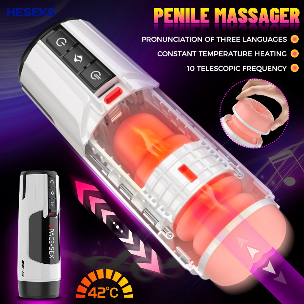 HESEKS 3 Em 1 Copo Masturbador Telescópica Automático Sex Toy Recarregável Estimulador De Penianos Pênis Elétrico De Temperatura Constante Com Pronúncia E 10 Modos De Telescópicos