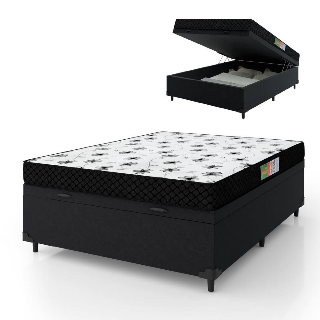 Cama Box Com Baú Casal Colchão Espuma 138x188x50cm Polar Branco / Preto