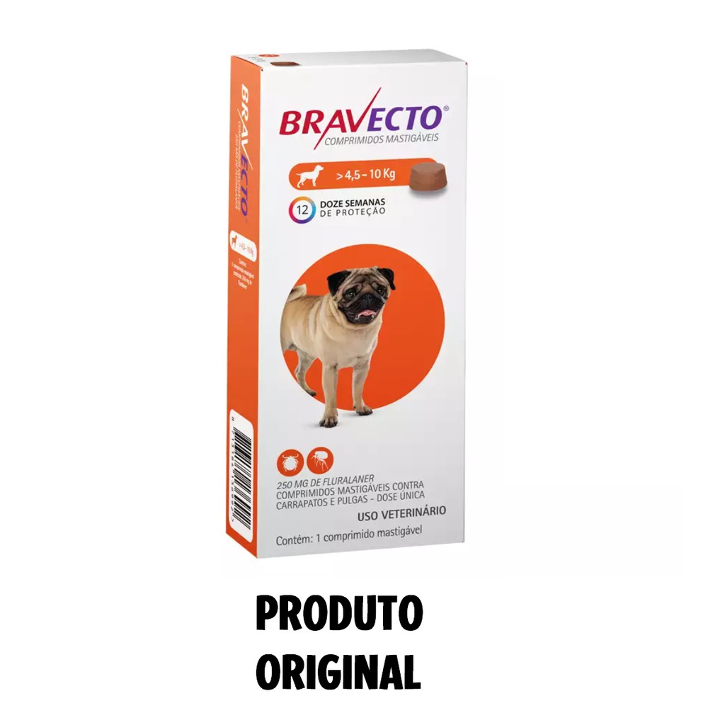 Bravecto 4,5 à 10 kg Antipulgas e Carrapatos para Cães - 1 COMPRIMIDO