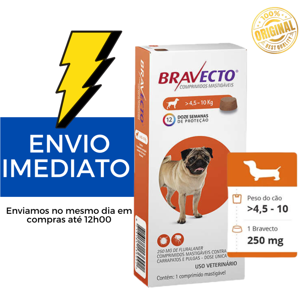 Bravecto Antipulgas E Carrapatos P/ Caes Bravecto De 4,5 A 10kg Original - Envio Imediato