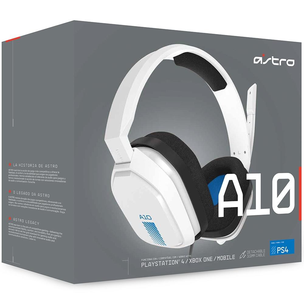 Headset Astro A10 Gamer Branco E Azul Ps4 / Xbox One / Mobile Conector 3,5mm
