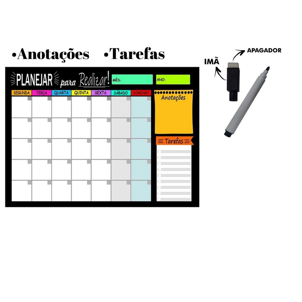 QUADRO PLANNER PLANEJAMENTO MENSAL E SEMANAL LOUSA ACOMPANHA IMÃS COM DUAS CANETAS