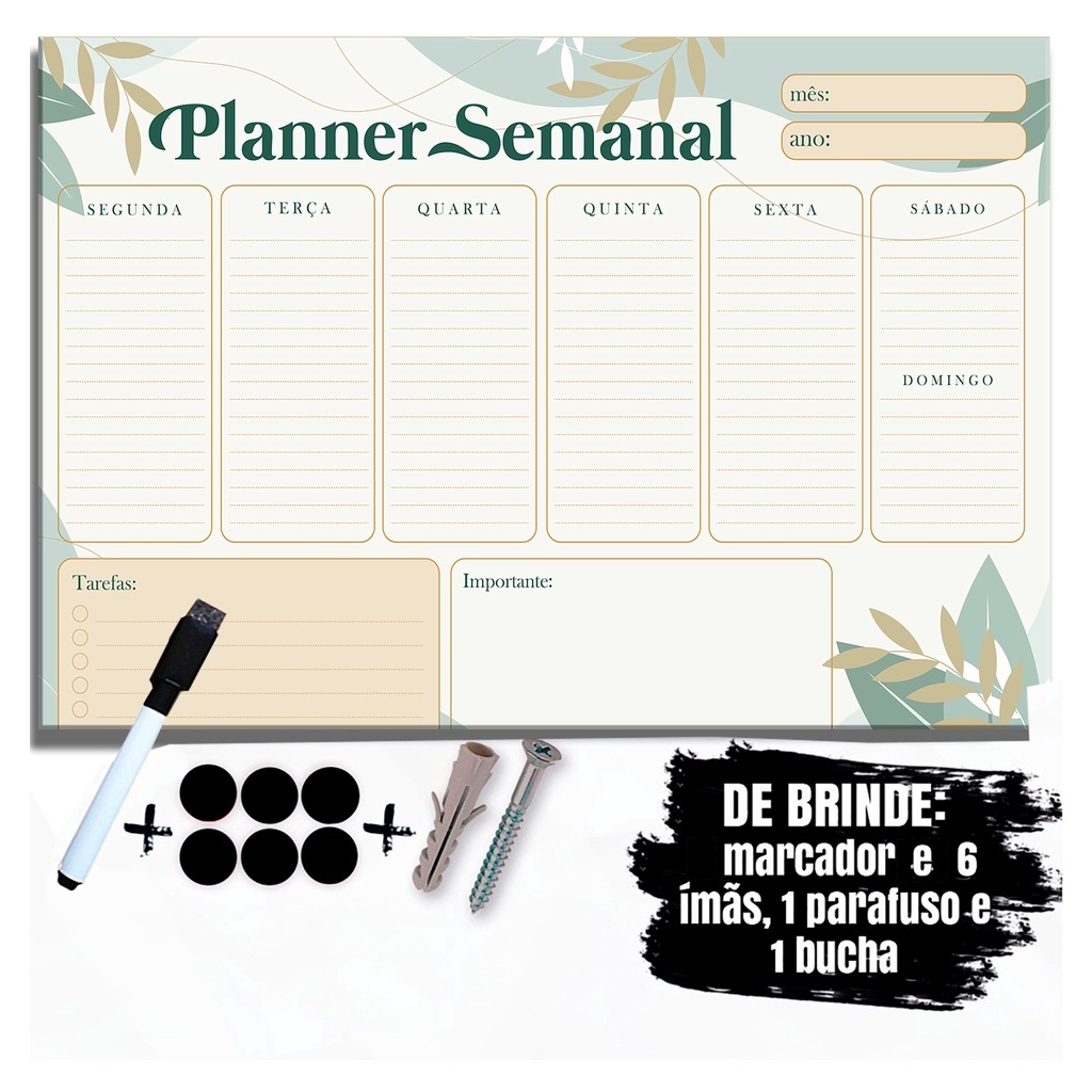 Quadro de Planejamento Mensal e Semanal, Planner, Quadro De Tarefas, Mural de Planejamento, Brinde Caneta Com Apagador e Imã, Vários Tamanhos
