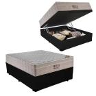Cama Box Baú Casal Suede + Colchão Molas Ensacadas Airtech Ortobom 69x138x188 Cor:preto