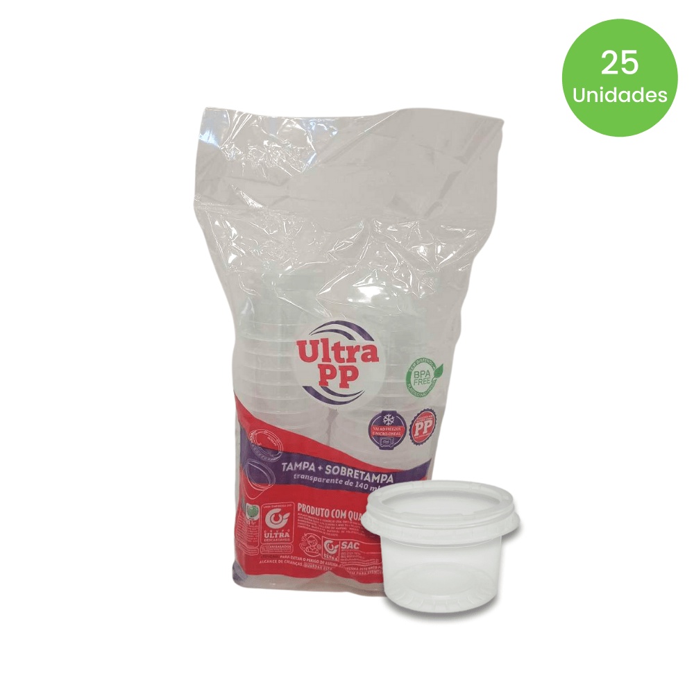 Pote de 140ml com tampa PP transparente Ultratherm Replast com 25 unidades