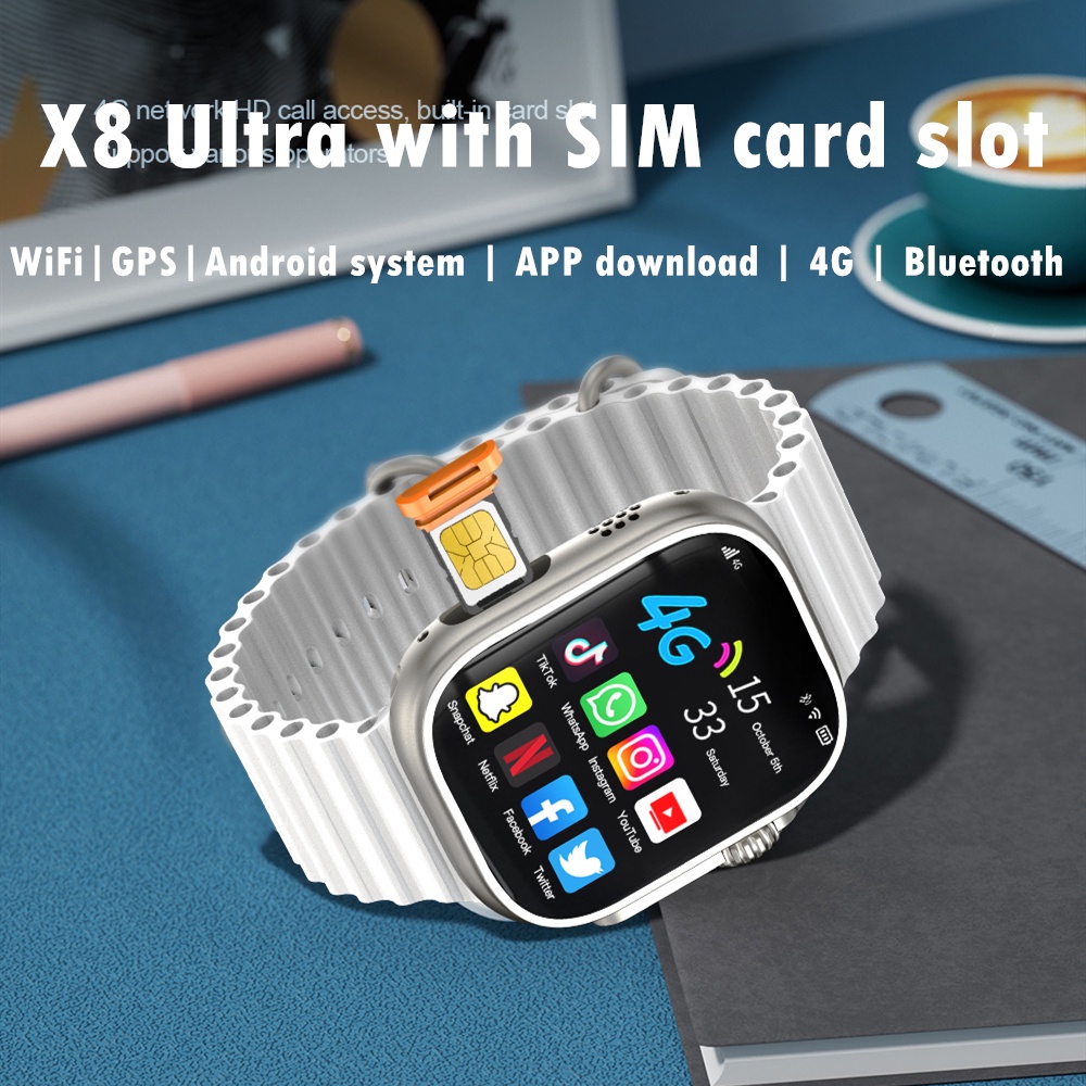 【 SIM Card 】 X8 Ultra Relógio Ultra Smart Watch Com slot Para Cartão 4G Wifi GPS 49mm Câmera 4G 64G Videochamada APP Download Android Homens Mulheres Crianças 1NXB