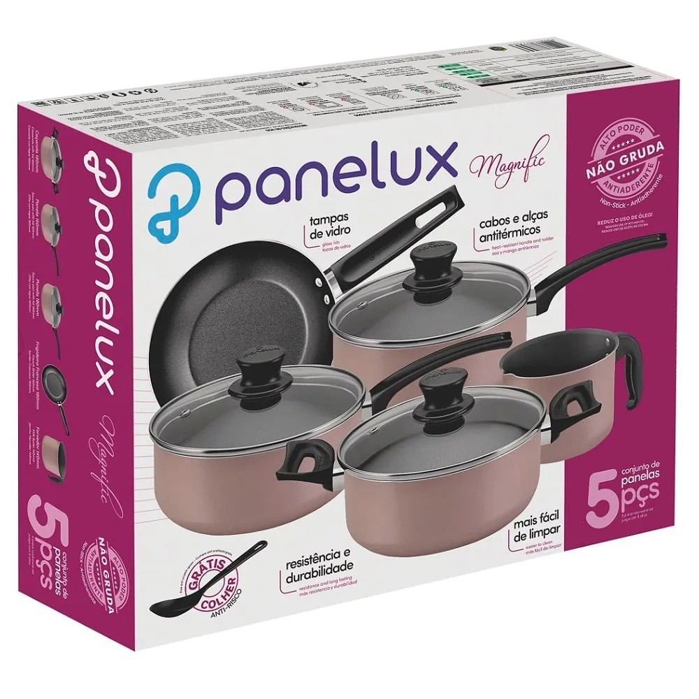 JOGO DE PANELAS ALUM 5 PEÇAS ROSE PANELUX MAGNIFIC