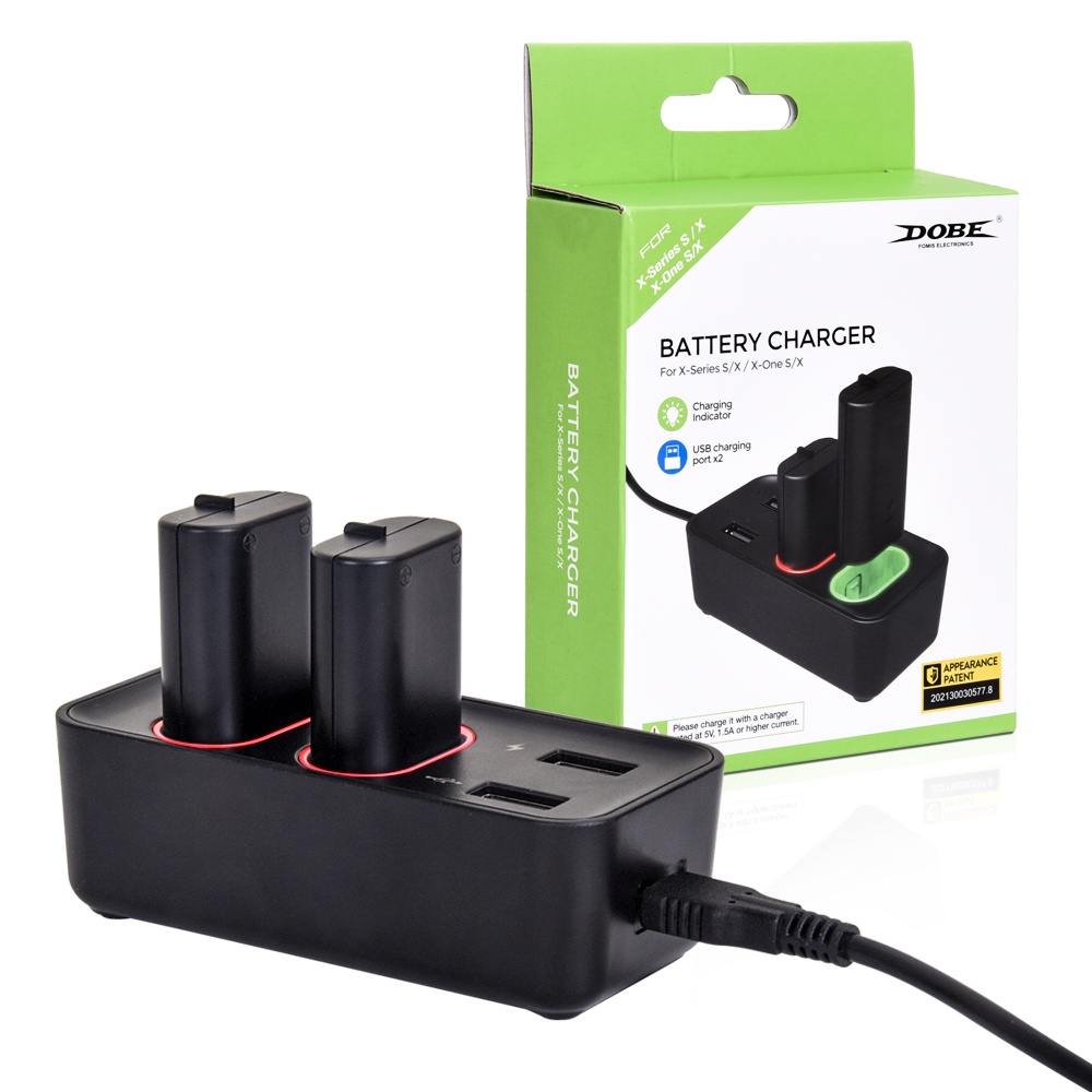 Kit Base Carregador Compatível com Controle Manete Joystick Xbox One Series S/X + 2 Baterias 800mAh - Dobe