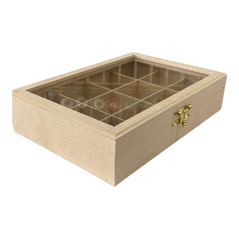 Caixa mdf Cristal - box especiarias - relógio - jóias - saches - chás - bijus - organizadora- convite - padrinhos madeira mdf com tampa de vidro