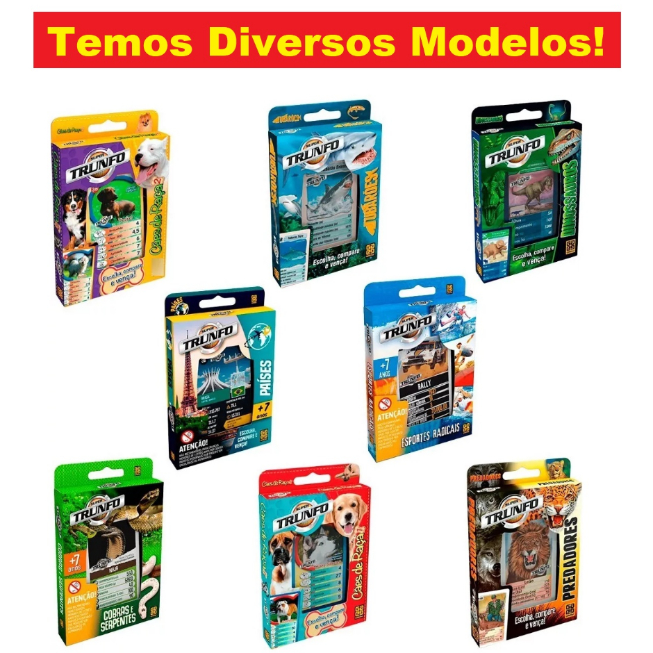 Super Trunfo Jogo de Cartas Grow Dinossauros Power Rangers Cães De Raça Gatos Animais Predadores