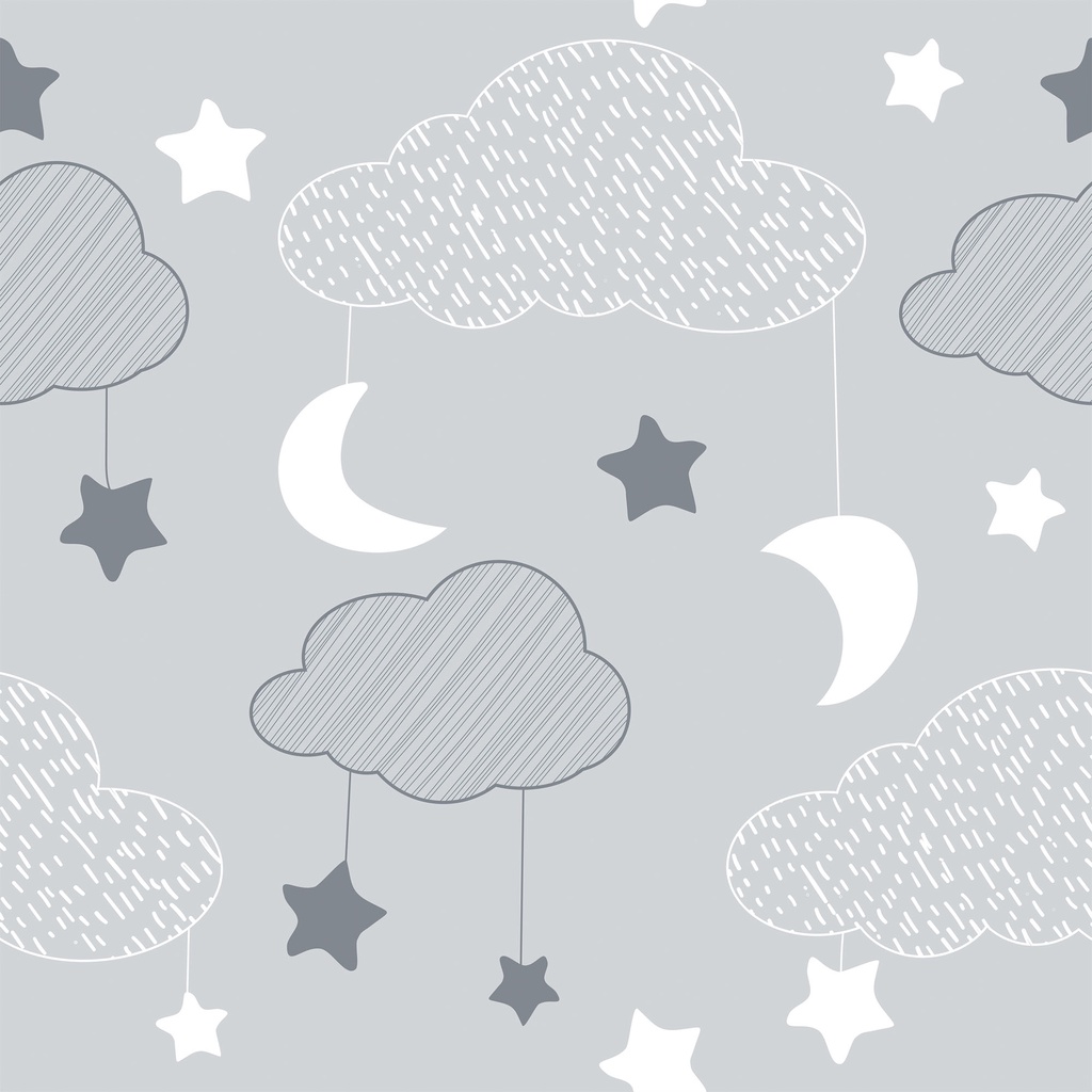 Papel De Parede Infantil Nuvens Cinza Estrelas e Luas Lavável Autocolante Quarto Autoadesivo