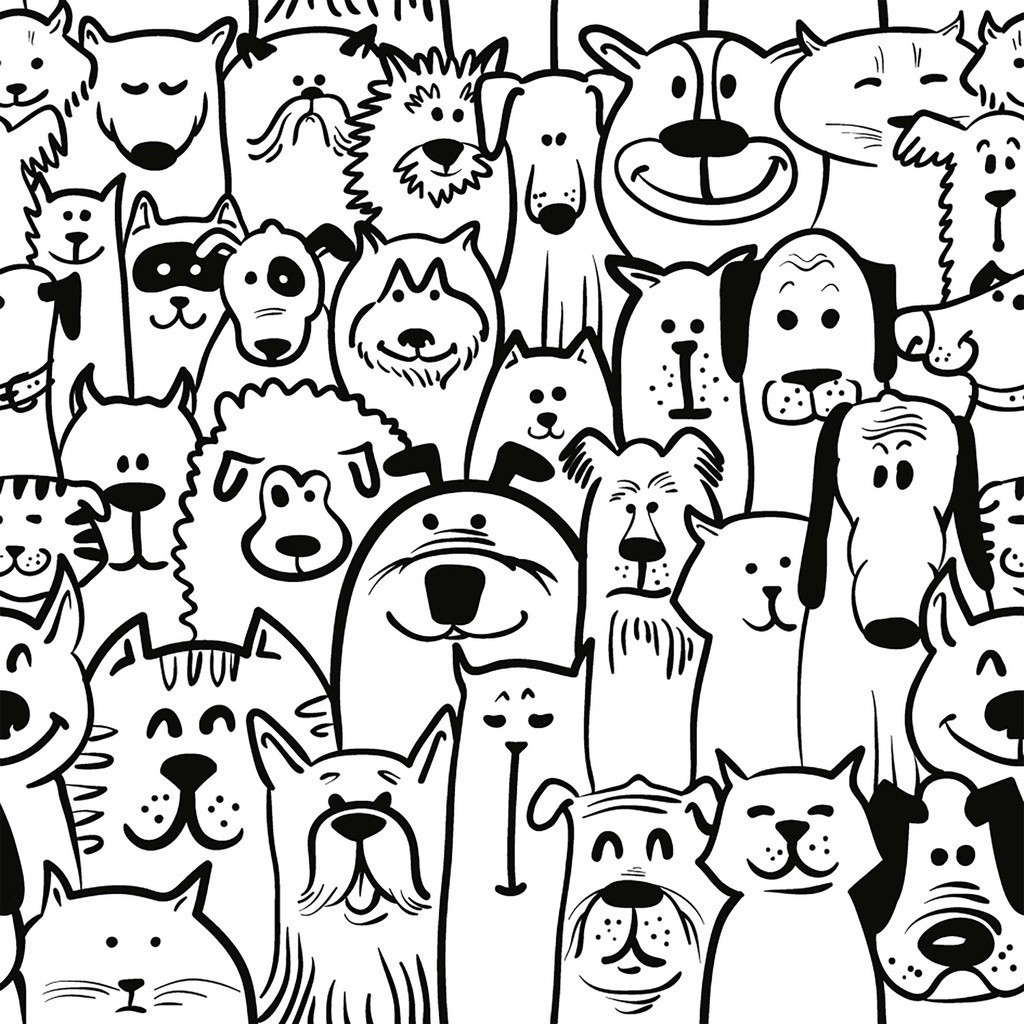 Papel De Parede Autocolante Desenho Cachorro Preto E Branco Cartoon Quarto Infantil
