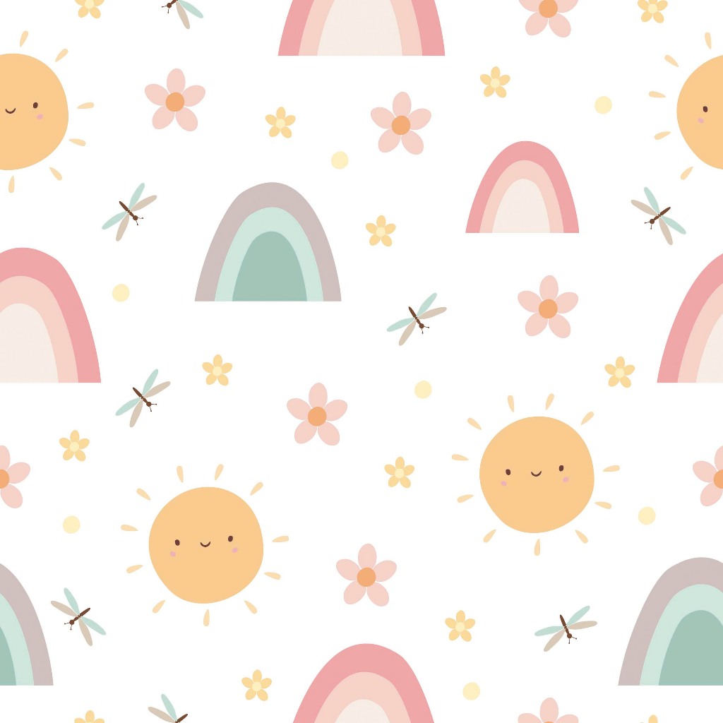 Papel De Parede Infantil Sol Arco Iris Quarto Adesivo Autocolante Antimofo - Sala - Quarto - Cozinha - Banheiro