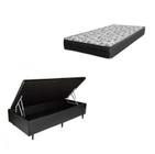 Cama Box Baú Solteiro 88 Sintético Preto com Colchão de Espuma D20 - Tampo Preto 12cm