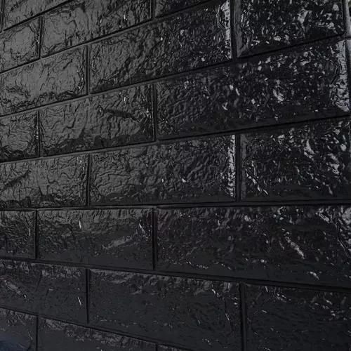 Kit 10 e 25 Placas Para Paredes 3D Auto Relevo Revestimento Parede Tijolinho Preto Em PVC 50 x 50