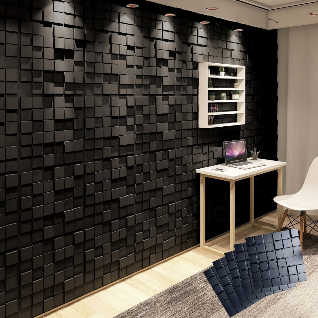 Kit 10 e 25 Placas Para Paredes 3d Auto Relevo Revestimento Parede Dubai Preto Em PVC 50 x 50