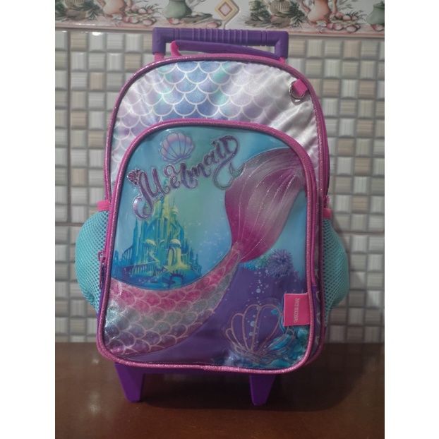 Kit de Mochila de Rodinhas Infantil, Lancheira e Estojo Sereia - Mochila P