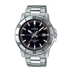 Relógio Masculino Marca Casio Casual Analógico Redondo Aço Inóx Prova Dágua Preto Prata MTP-V001D