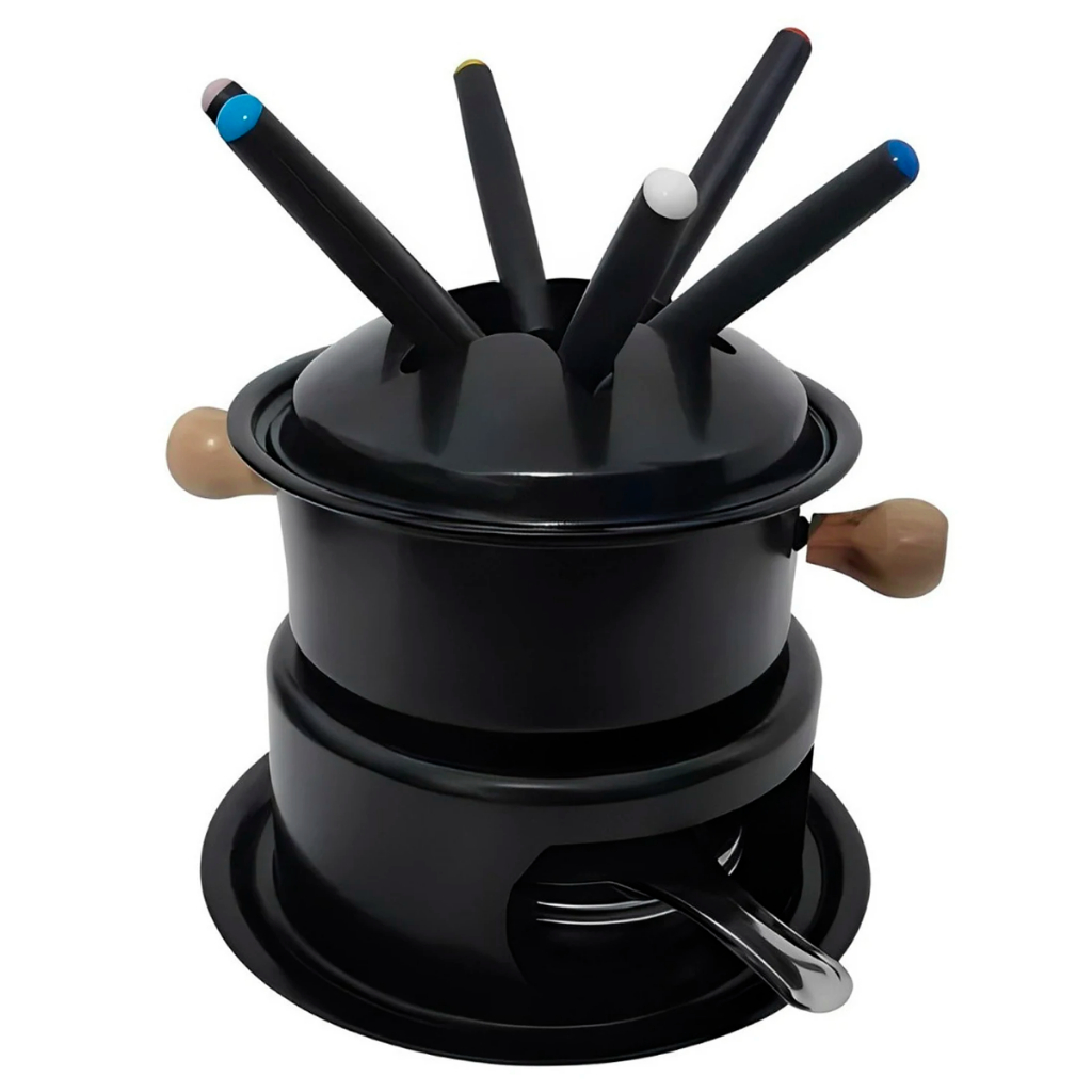 Aparelho De Fondue Inox Com 11 Peças Até 6 Pessoas Completo Esmaltado Black