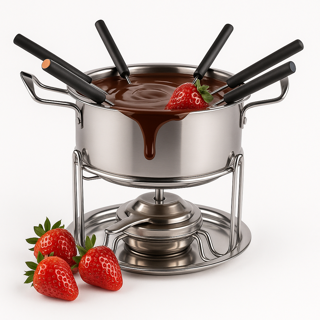 Conjunto Fondue Kit Aço Inox 10 Peças Fogareiro Panela Chocolate Queijo Aparelho Cozinha Gourmet - 110V