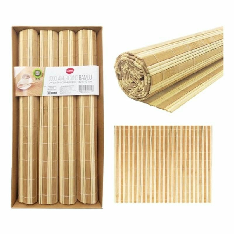 Kit Jogo Americano 4 Peças De Bambu 30x40cm Casa Palace