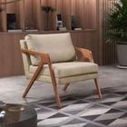 Poltrona Living Pés e Base em Madeira Linho Cotton Bege