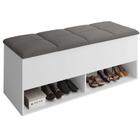Calçadeira Bau Marry com Sapateira para cama Box de Casal Branco Suede Cinza