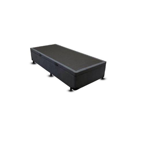 Cama Box Baú Solteiro Blindado Suede Cinza com 78cm de Largura - Preto