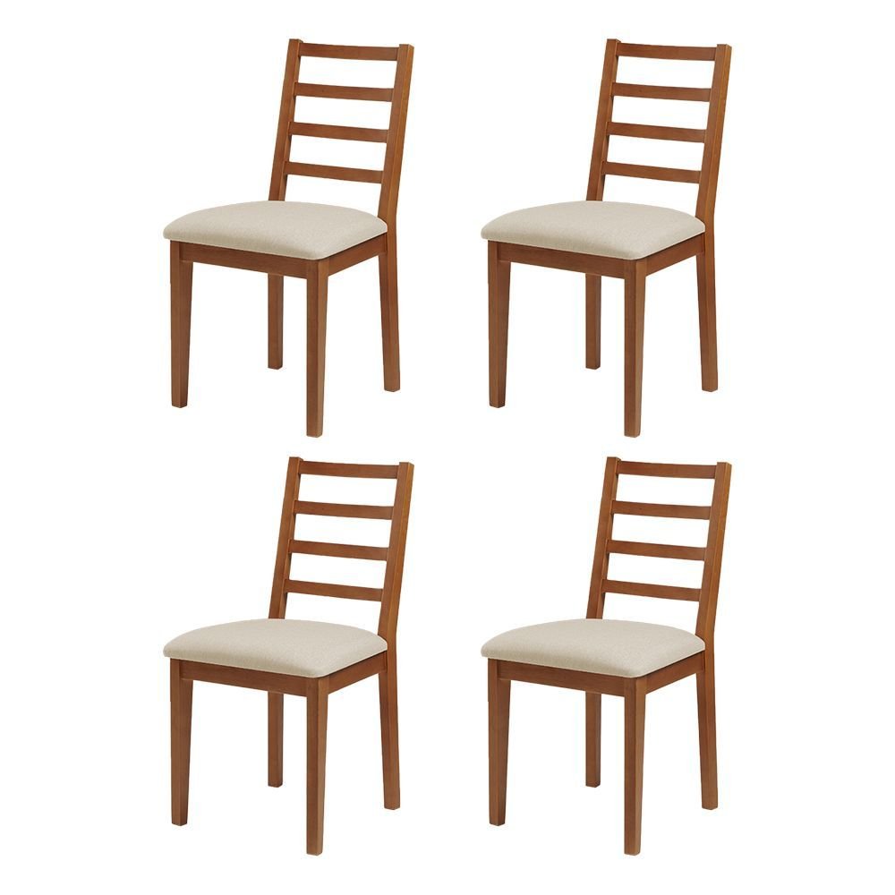 Kit 4 Cadeiras de Jantar em Madeira Maciça Aline Estofado Linho Creme - Mel