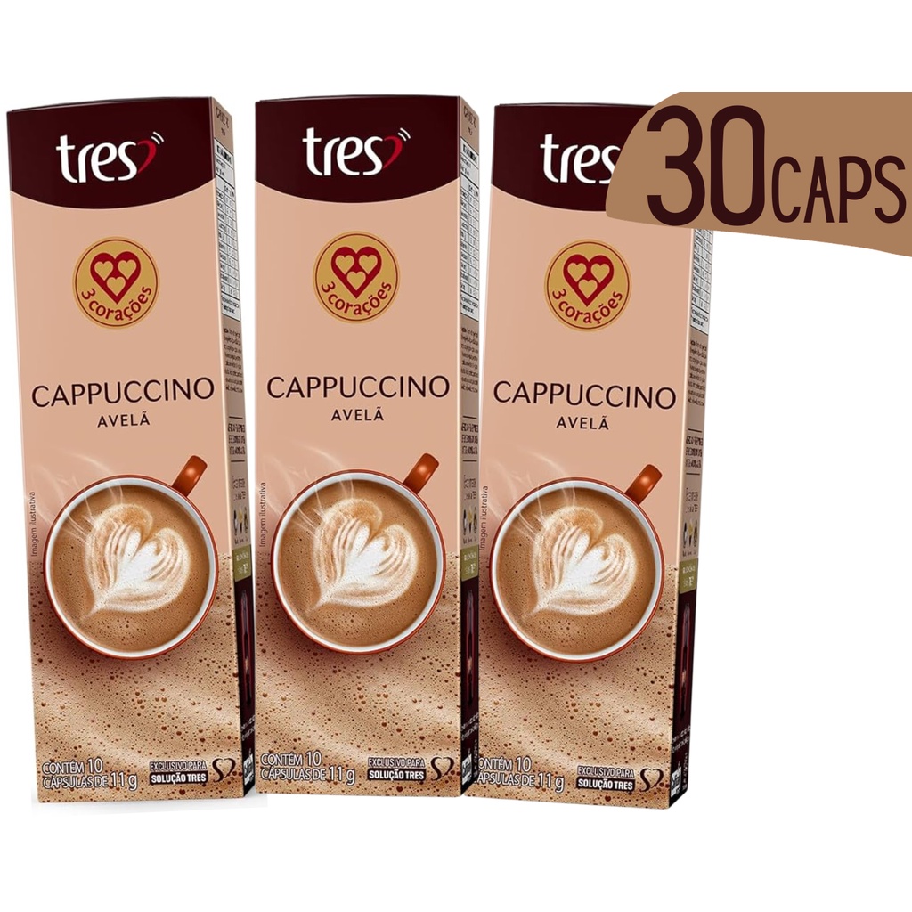 Cápsula De Café Cappuccino com Avelã Três 3 Corações - 30 Doses