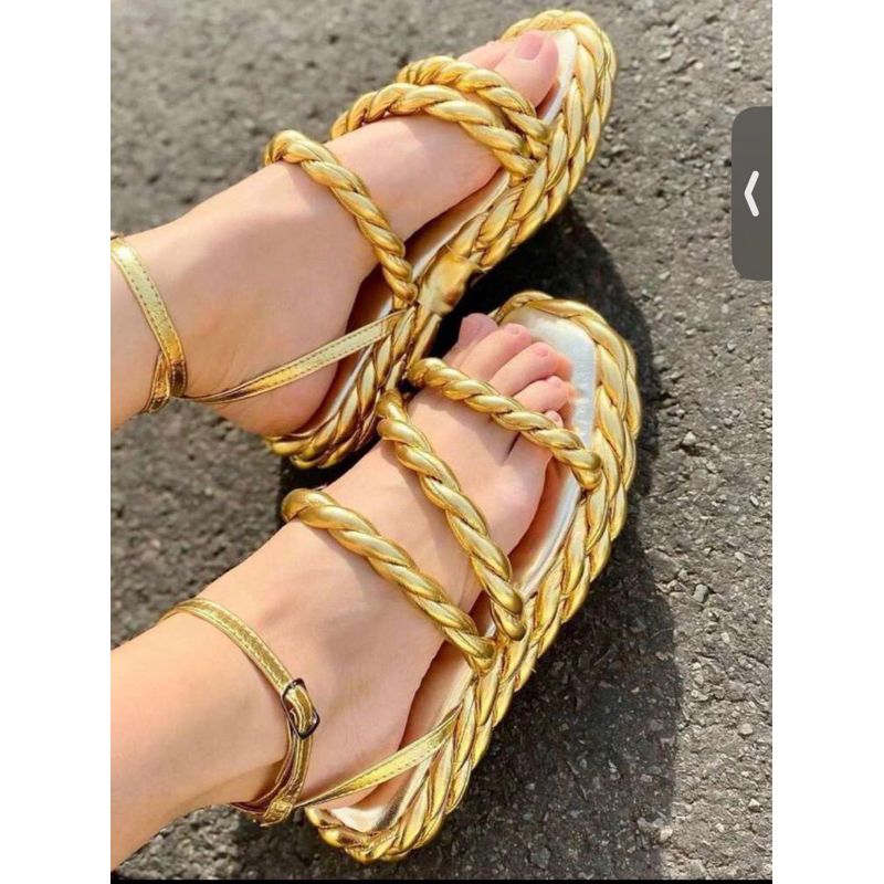 sandália flatform tiras trançadas metalizadas oneself ouro