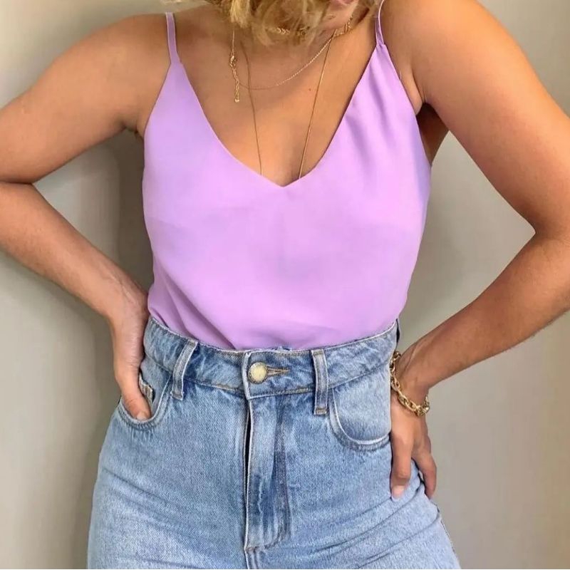 Regata básica alça fina - regulavel - fresquinho - super leve - liso - tecido-crepe decote v com forro - moda 2023 viscose