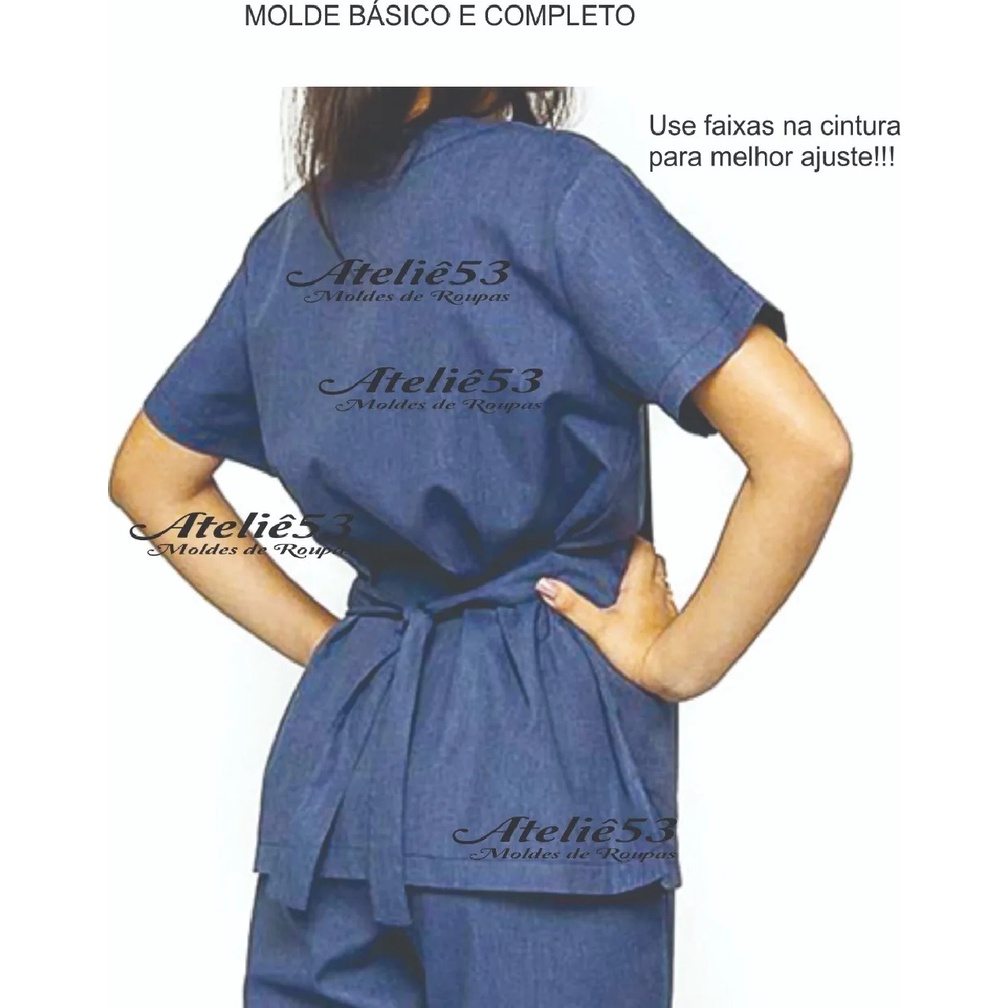 Molde de Roupa Pijama Scrub Feminino Pijama Enfermagem Em Papel Gramatura 80g * Blusa Tamanhos P,M,G e GG SEPARADAS *Calça Tamanhos P,M,G e GG SEPARADAS