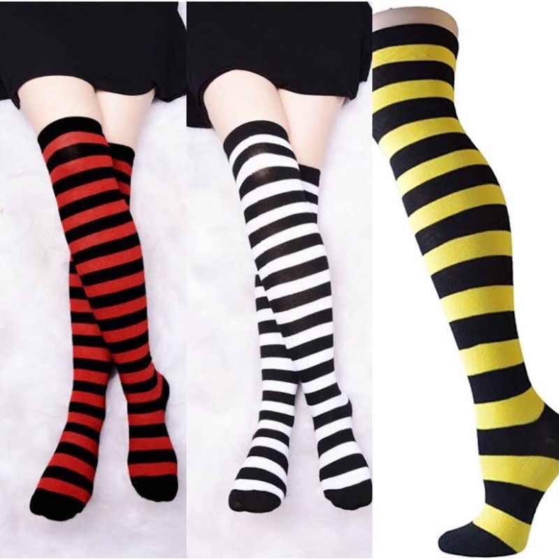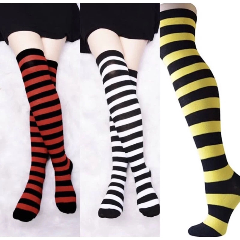 Meia De Cano Alto Listrado 7/8 / Meia fina Até O Joelho Lisa / Coxa / Cosplay / Anime /fantasia / carnaval