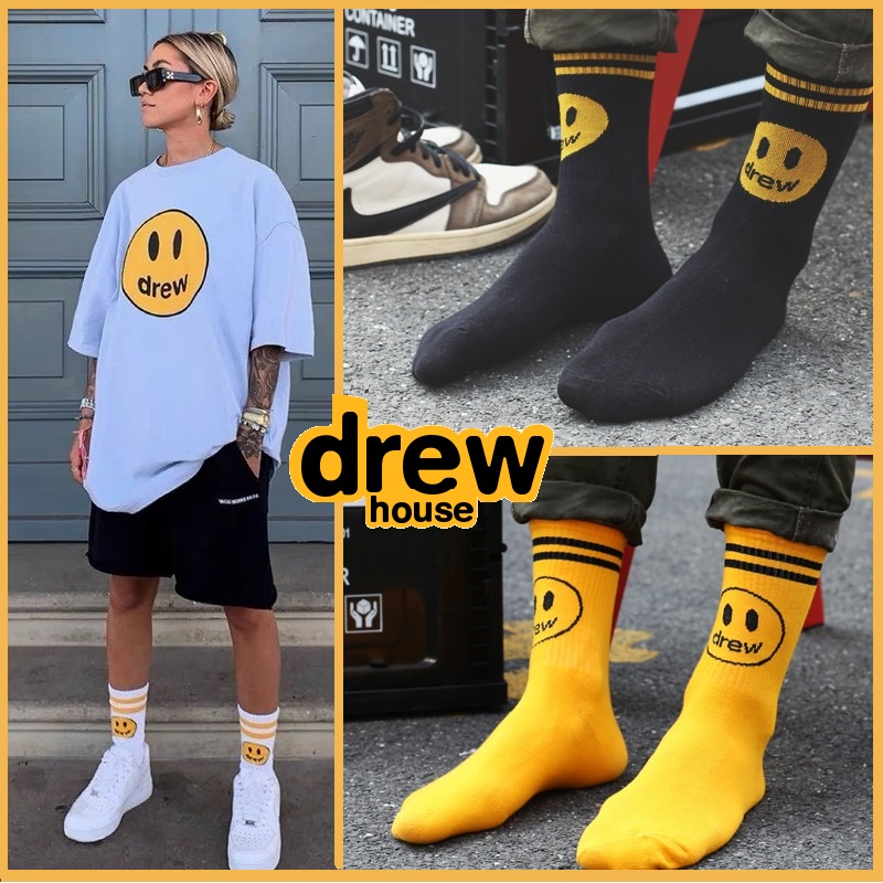 Meia cano alto streetwear 1 par, cano longo clanelada para o frio drew justin bieber, duas listras