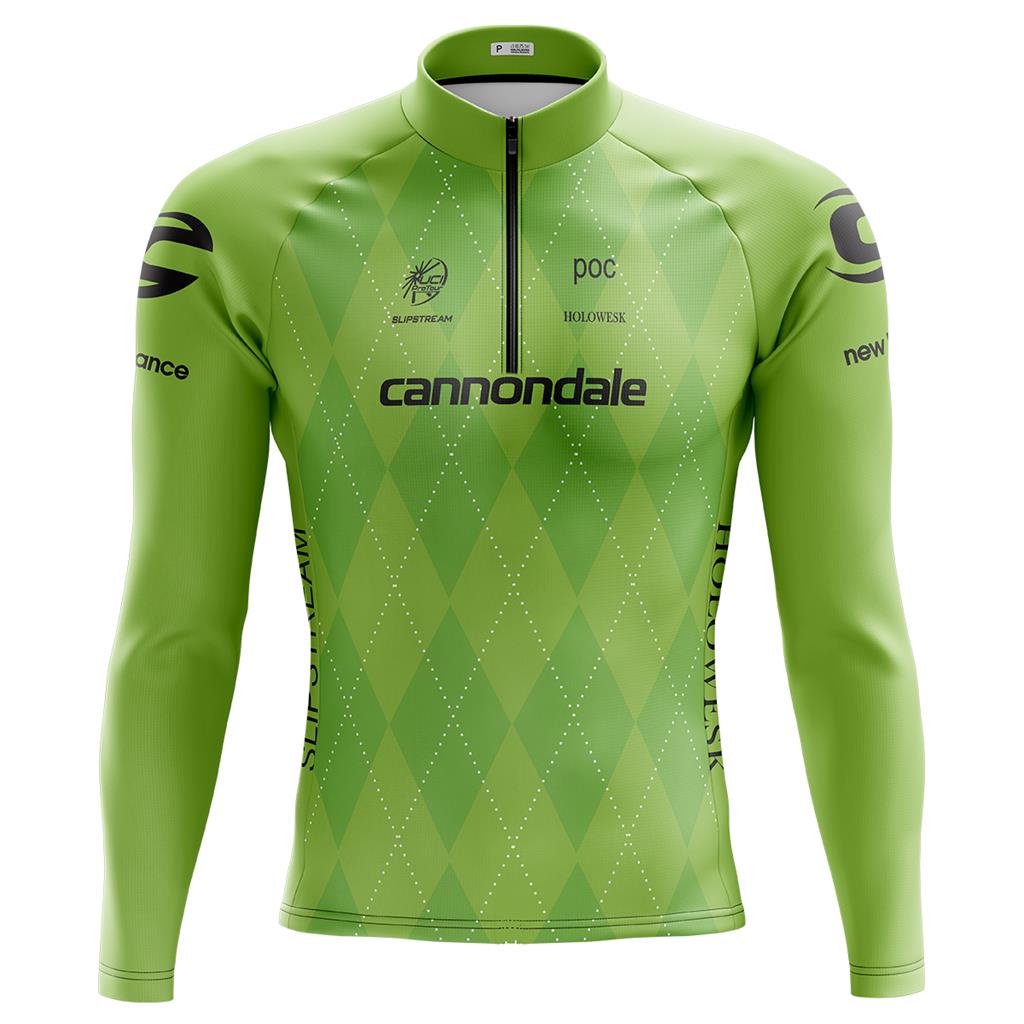 Camisa Ciclismo Camiseta Ciclista Roupa de Ciclismo Masculina Manga Longa Cannondale Verde Com Bolsos UV 50+