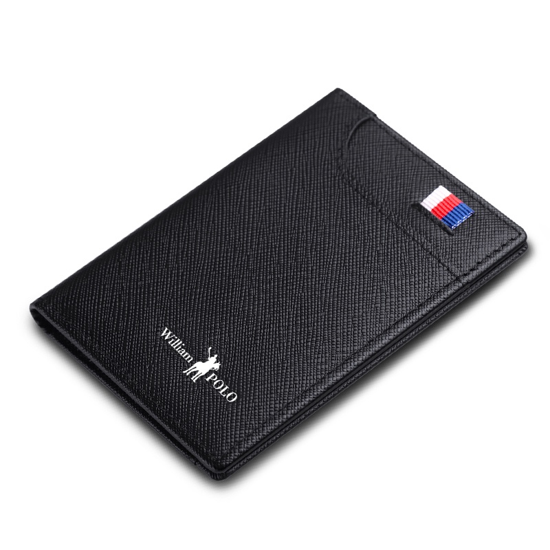 WILLIAMPOLO Carteira Masculina 6 Porta-Cartões Bolsa Para Homens De Couro De Luxo De Cartão De Crédito Pequena O Marido Preto