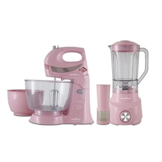 Conjunto Kit cozinha Britania Liquidificador e Batedeira Rosa
