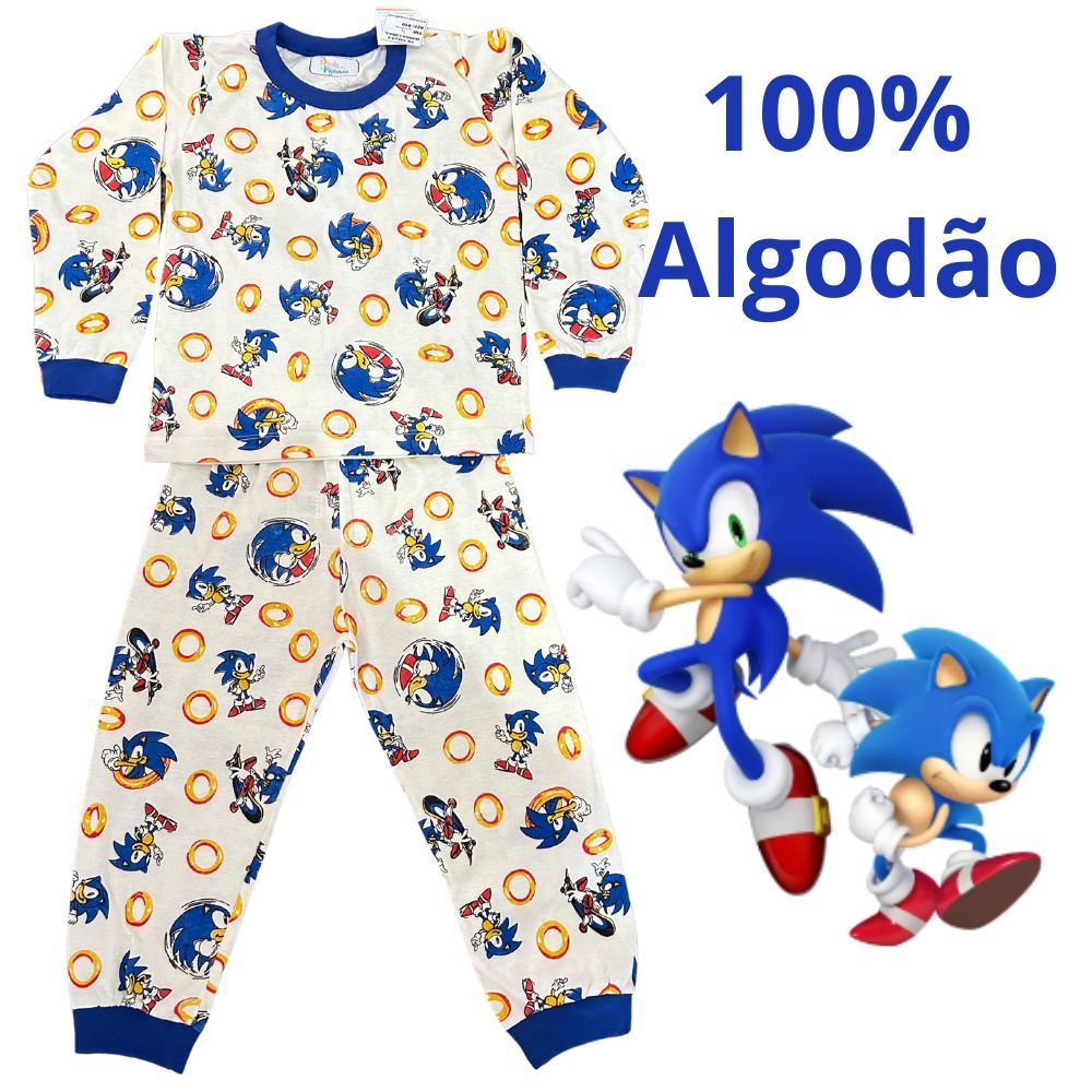 Pijama Infantil Menino Sonic Algodão Inverno Manga longa