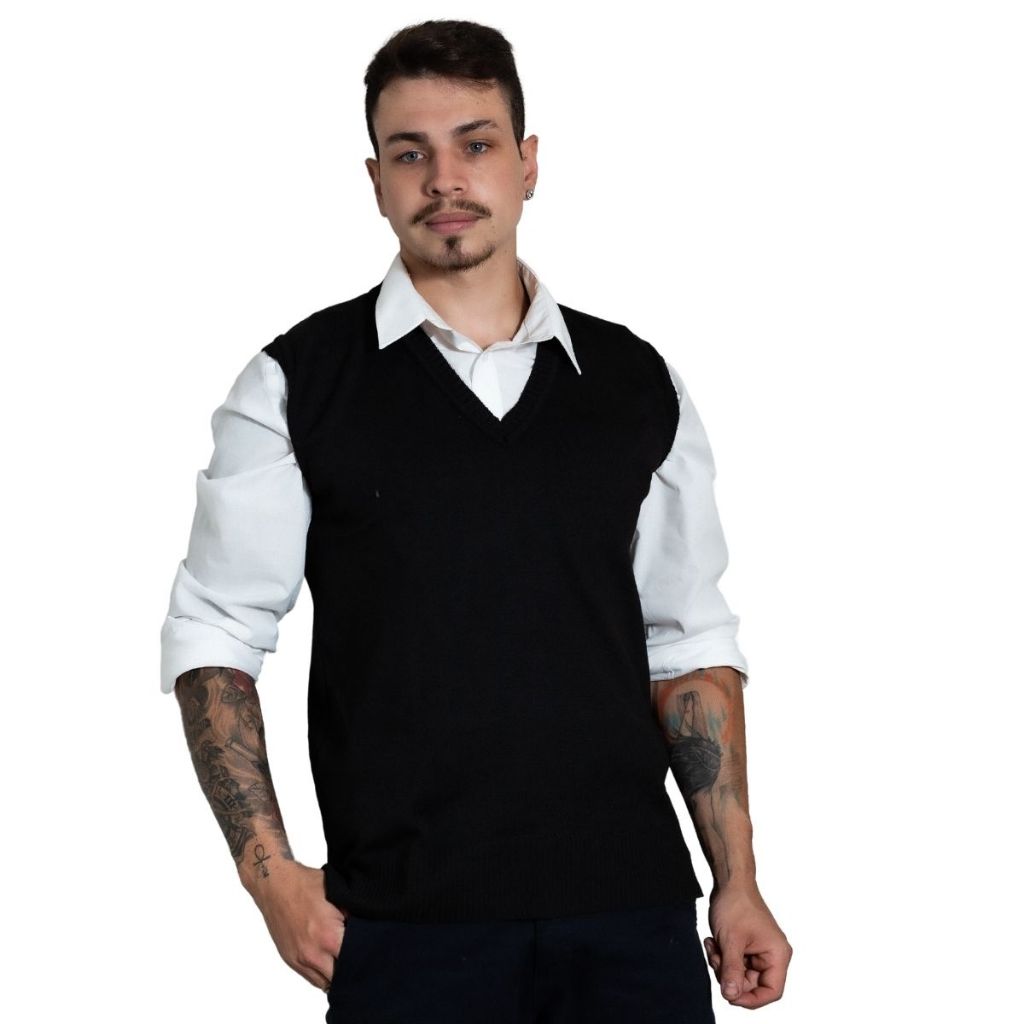 COLETE SOCIAL MASCULINO TRICÔ COLETE TRICOT SOCIAL PRETO PARA USAR POR CIMA DE CAMISAS