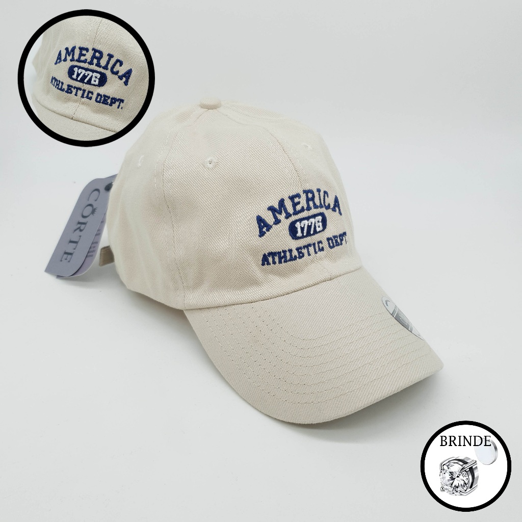 Boné Palha Retrô Bordado 1776 High School Aba Curva Baisebol Bege Unissex