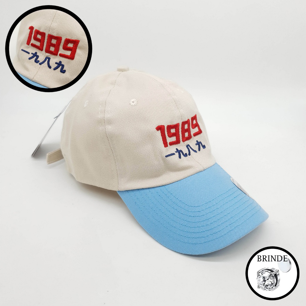 Boné Palha Retrô Bordado Japonês 1989 High School Aba Curva Baisebol Bege Unissex