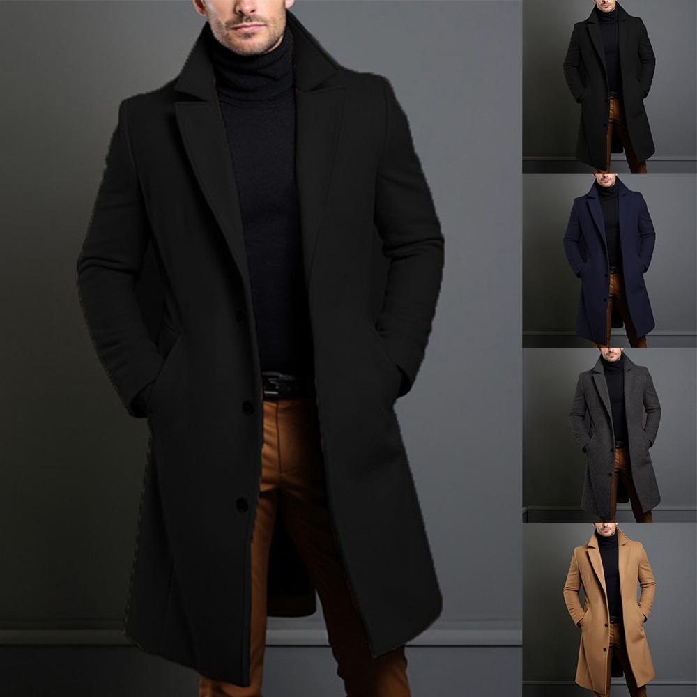 Casaco De Lã De Luxo Preto Longo E Quente Homens De Trincheira Peito Único