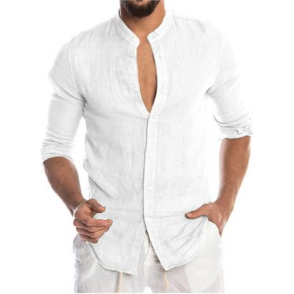 Camisa Linho Masculina Manga Longa Social Botão Gola Padre e Gola Colarinho - P M G GG XG