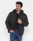 Jaqueta Masculina Puffer Preta De Ziper com Touca Removível e Bolsos internos