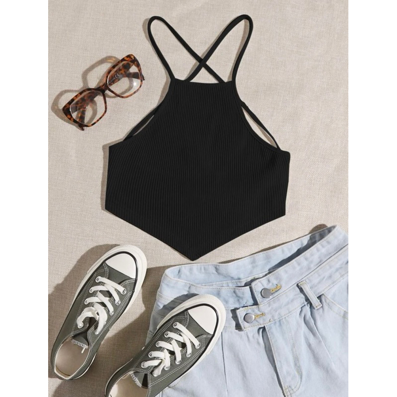 blusa feminina Costas nuas Criss Cross Tie Back Simples sexy Regata & Camisa