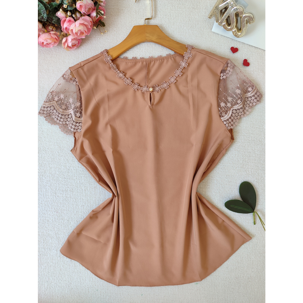 YW&X MODA blusa social feminina com renda manga curta tecido crepinho