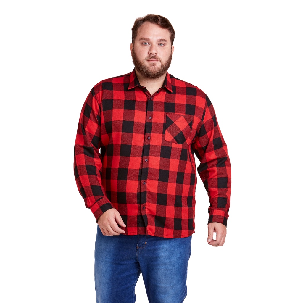 Camisa Xadrez Masculina Plus Size Manga Longa Flanelada